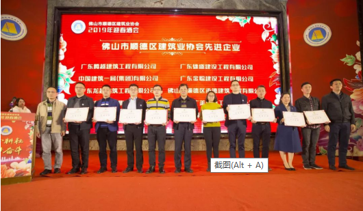 2019年2月27日,廣東騰越應(yīng)邀出席佛山市順德區(qū)建筑業(yè)協(xié)會(huì)年終頒獎(jiǎng)典禮,并被授予了 “佛山市順德區(qū)建筑業(yè)協(xié)會(huì)先進(jìn)企業(yè)”、“順德區(qū)工傷保險(xiǎn)進(jìn)施工企業(yè)活動(dòng)最佳合作協(xié)辦單位”兩大殊榮,而所承建的容桂晴瀾苑及北滘?qū)W校項(xiàng)目也在會(huì)上大放異彩,以扎實(shí)的建造功底及精益求精的工作態(tài)度,相繼斬獲“廣東省優(yōu)質(zhì)工程結(jié)構(gòu)獎(jiǎng)”及“順德區(qū)建筑工程安全生產(chǎn)文明施工示范工地”榮譽(yù)稱號(hào),受到與會(huì)人員一致好評(píng)。