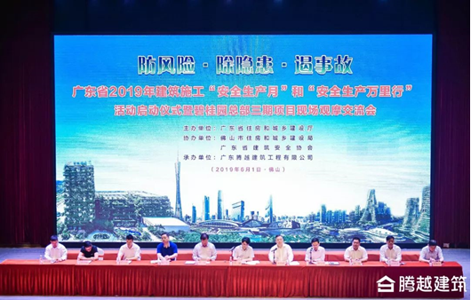 2019年6月1日,廣東省2019年建筑施工“安全生產(chǎn)月”和“安全萬里行”活動啟動儀式在廣東騰越碧桂園總部三期項(xiàng)目隆重舉行。廣東省住房和城鄉(xiāng)建設(shè)廳、廣東省各地市住建部門、安全監(jiān)督機(jī)構(gòu)、建筑業(yè)協(xié)會、建筑安全協(xié)會和各地施工、監(jiān)理單位代表共1000余人出席儀式。