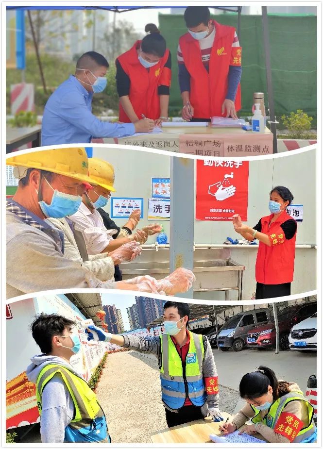 從組織工友檢疫到宣貫防護知識,從梳理建檔員工健康檔案到落實項目場地消殺,黨員服務(wù)隊實行專人專職,并嚴格把控每一個環(huán)節(jié),他們做好本職工作的同時,重復在疫情一線,為廣大工友吃下一顆“定心丸”。