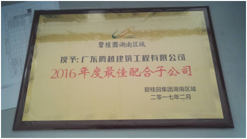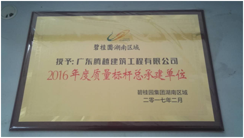初夏的三湘大地,青色濃郁,催人奮進(jìn)。在這個(gè)萬(wàn)類(lèi)競(jìng)綠、一片繁茂的時(shí)節(jié),廣東騰越湖南分公司從碧桂園湖南區(qū)域接過(guò)“最佳配合子公司”、“2016質(zhì)量標(biāo)桿總承建單位”兩塊“沉甸甸”的獎(jiǎng)牌。