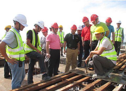 12月22日,公司總經(jīng)理馬小軍總率檢查組一行深入馬來西亞分公司金海灣項(xiàng)目施工現(xiàn)場檢查指導(dǎo)工作時(shí),發(fā)現(xiàn)該項(xiàng)目采用鋁合金模板和用方鋼替代木枋作橫撐龍骨,當(dāng)場表現(xiàn)出濃厚興趣,并進(jìn)行了深入調(diào)研。